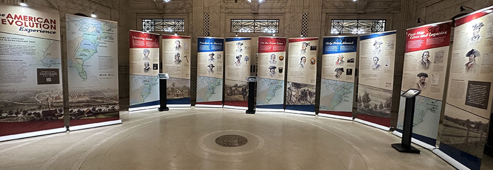 This innovative pop-up exhibition includes display panels and interactive digital kiosks that use storytelling, illustration, technology and unique artifacts and primary accounts to connect modern audiences with the people and places that shaped the birth of our nation.
