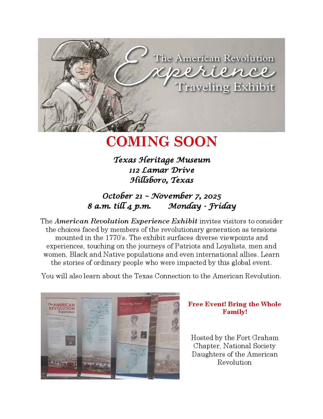 The American Revolution Experience Exhibit is coming to Texas Heritage Museum in Hillsboro October 21- November 7 2025