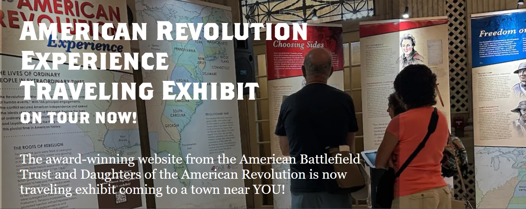 From an award-winning website to an in-demand pop-up exhibition, the American Revolution Experience, a collaborative project of the American Battlefield Trust and the Daughters of the American Revolution is beginning a new phase in its quest to connect modern audiences with the fascinating story of our nation’s origin. The American Revolution Experience will travel to scores of libraries, historical societies and museums through 2025, introducing visitors to a cast of historical characters with diverse experiences throughout the conflict and the places they visited on their journey.