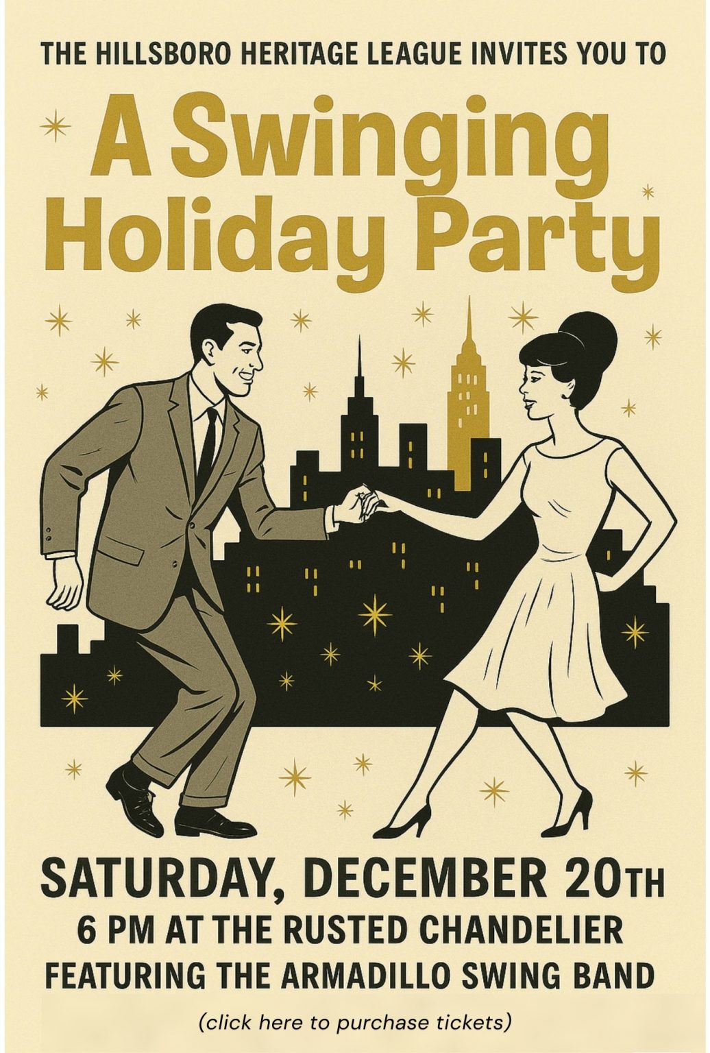 Saturday, December 20th 6-10 pm A Swinging Holiday Party with 17 Piece Swing Band