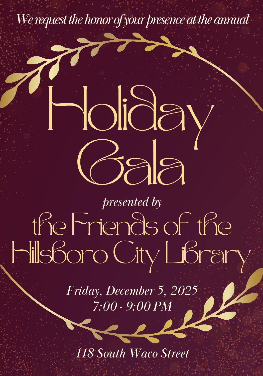 Friday, December 5th 7-9 pm Holiday Gala at the Hillsboro City Library