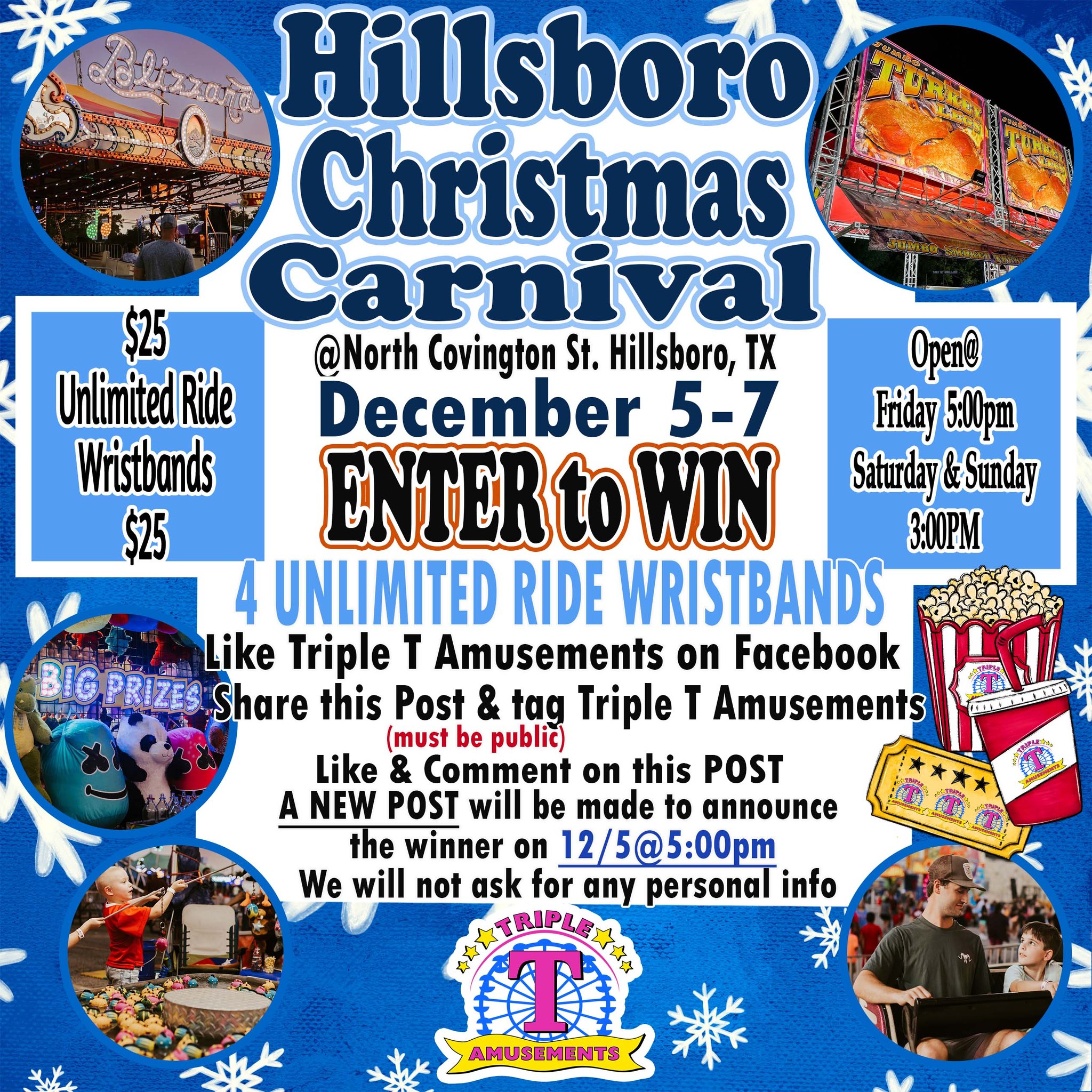 Sunday, December 7th 3pm to close Triple T Amusements Christmas Carnival Downtown