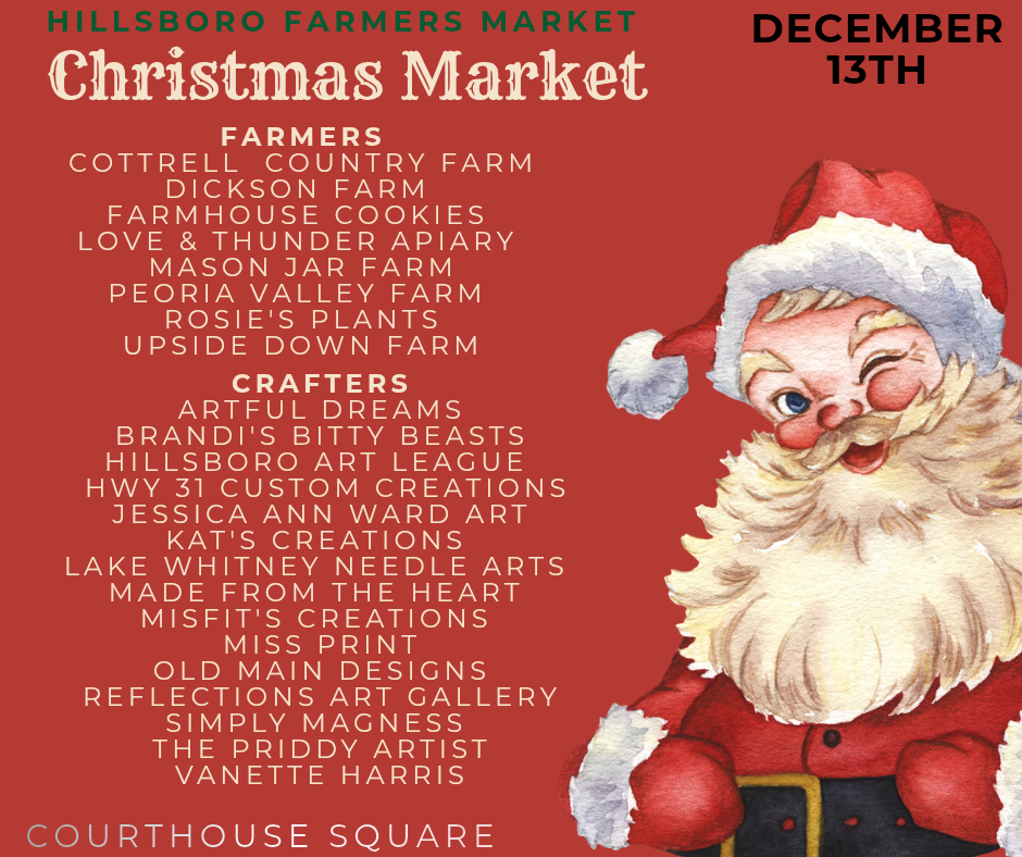 Saturday, December 13th 10:30 – 3pm Christmas Market in Downtown Hillsboro