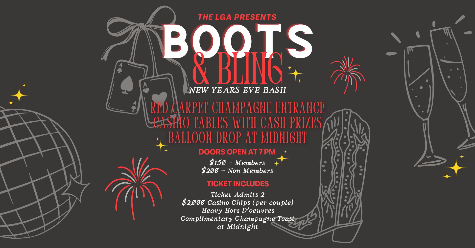 Wednesday, December 31st -7 pm Hillsboro Country Club Boots & Bling NYE Party and Casino Night