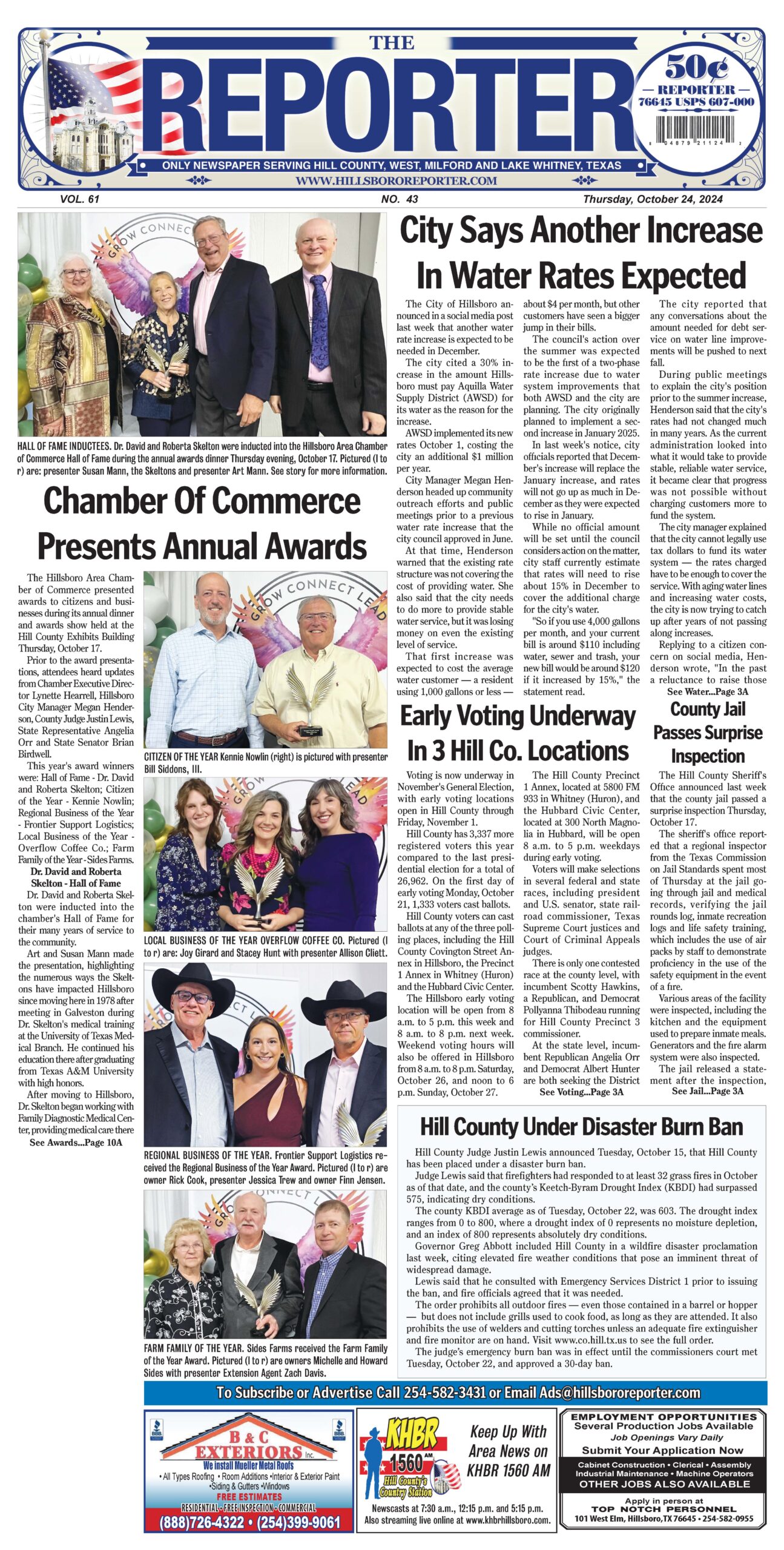 Please contact the Hillsboro, Texas area Chamber of Commerce at 254-582-2481 if you need assistance or more information.