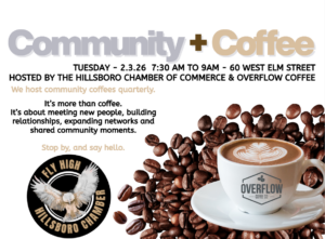 Hillsboro Texas Enjoy coffee with fellow businesses, citizens and local leaders at a community coffee meetup in downtown Hillsboro. It’s more than coffee.It’s about meeting new people, building relationships, expanding networks and shared community moments. 7:30 am to 9 amTuesday February 3rd 2026Overflow Coffee – 60 W Elm StreetCasual come and goComplimentary community coffee urnOverflow…