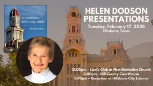Three Presentations by will be given in Hillsboro, Texas on Tuesday, February 17th 2026 12:00 pm – Lions Club at First Methodist Church(private Lions Club event)inquire about attending at 254-582-2481 2:00 pm – Hill County Courthouse (open to the public) 5:00 pm – Hillsboro City Library Reception (open to the public) During these presentation and…